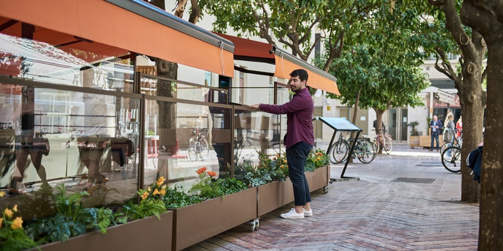 Los fijos delimitan de forma permanente la terraza, mientras que los móviles permiten adaptarse según la climatología o la disposición de las mesas.