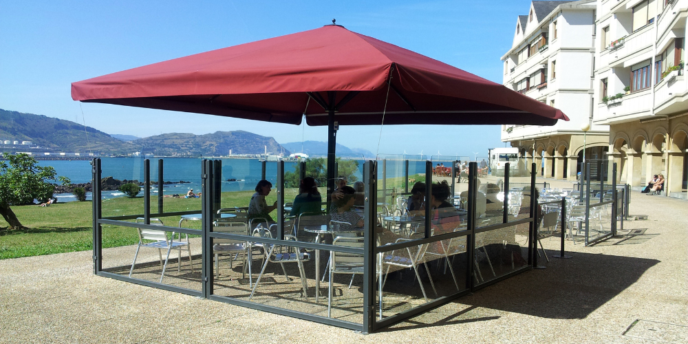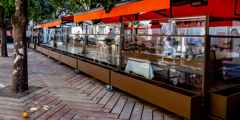 Los hoteles usan este cerramiento para crear áreas exclusivas al aire libre, donde los huéspedes puedan desayunar, tomar un cóctel o celebrar eventos sin preocuparse por el viento o el frío.