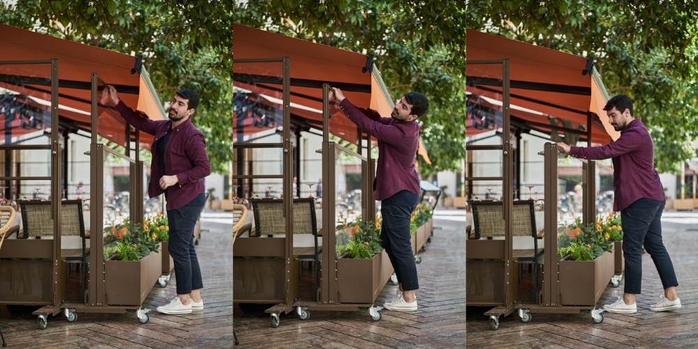 En ciudades costeras o zonas con viento frecuente, las mesas de terraza pueden quedar inutilizadas gran parte del año. Protege a los clientes, permitiendo que la terraza se mantenga operativa y acogedora, independientemente de la climatología.